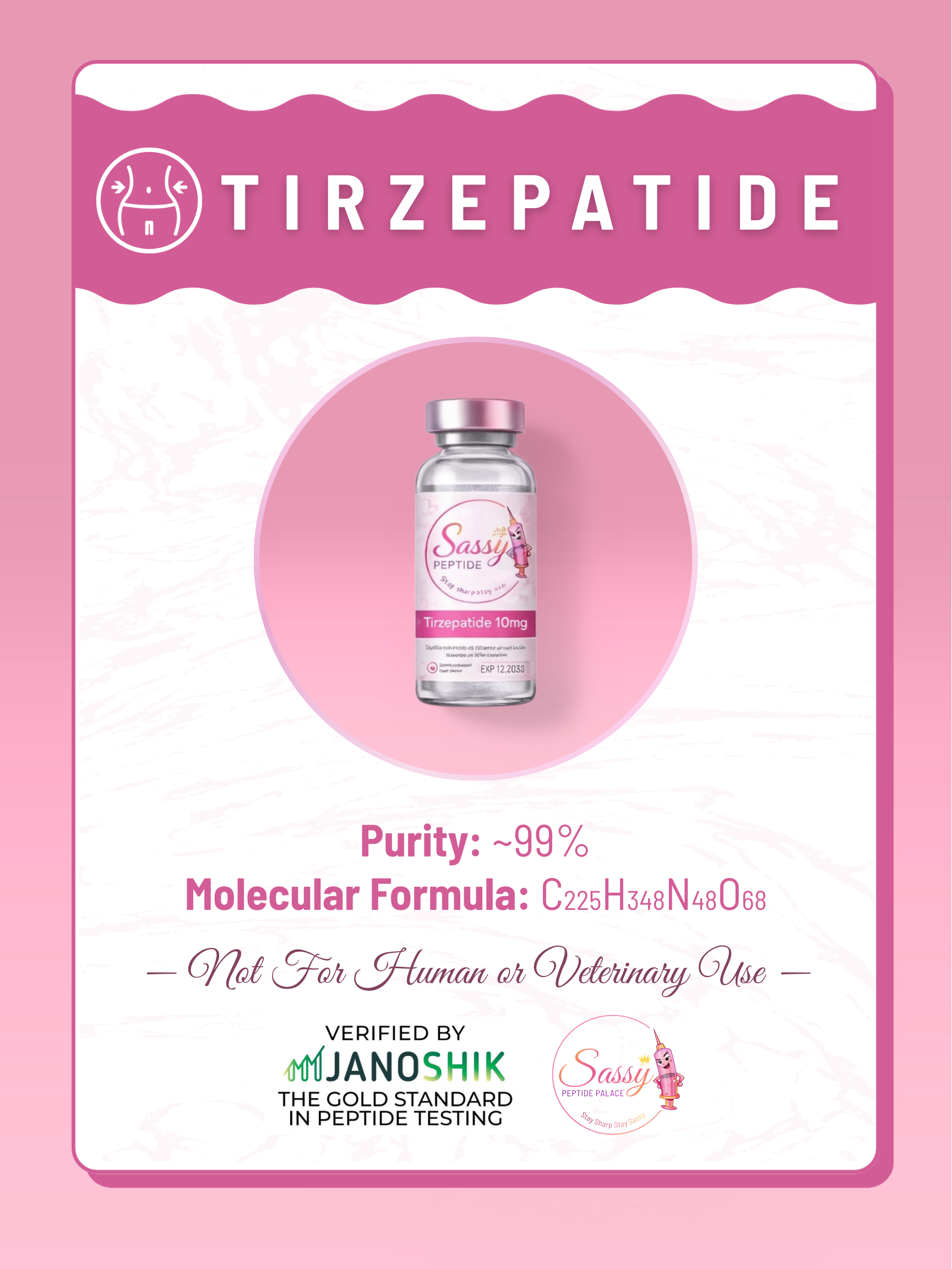 Tirzepatide is a synthetic peptide studied for its interaction with incretin-related receptor pathways. In laboratory research models, this compound is known to interact with both GLP-1 and GIP receptors, making it a compound of interest in metabolic pathway studies. Researchers often explore tirzepatide when examining signaling mechanisms related to glucose regulation and energy balance.