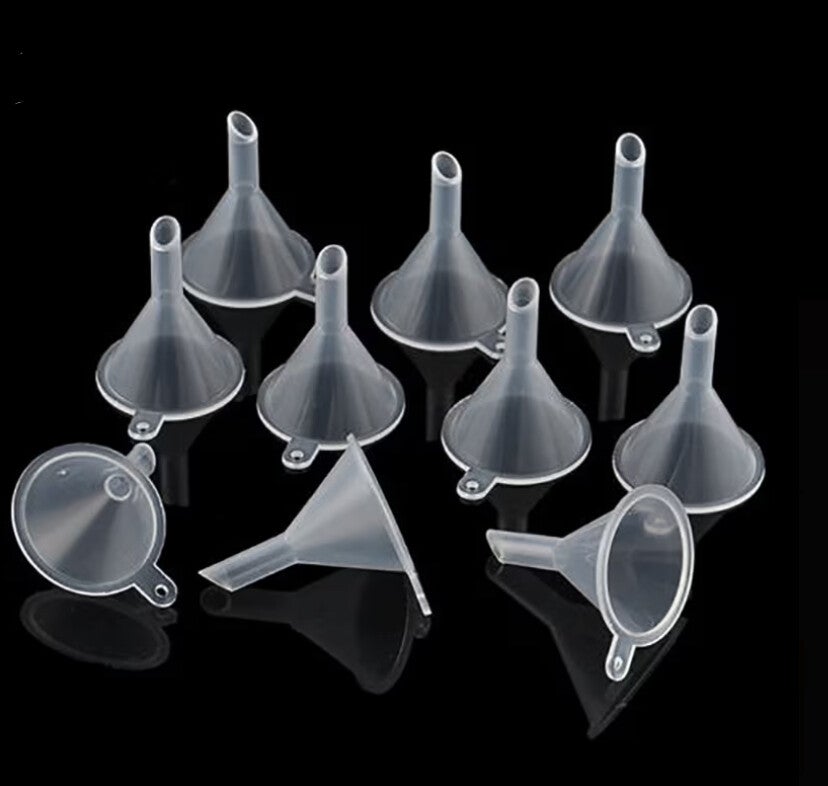 Compact funnel designed for mess-free, accurate transfers into small containers and vials.